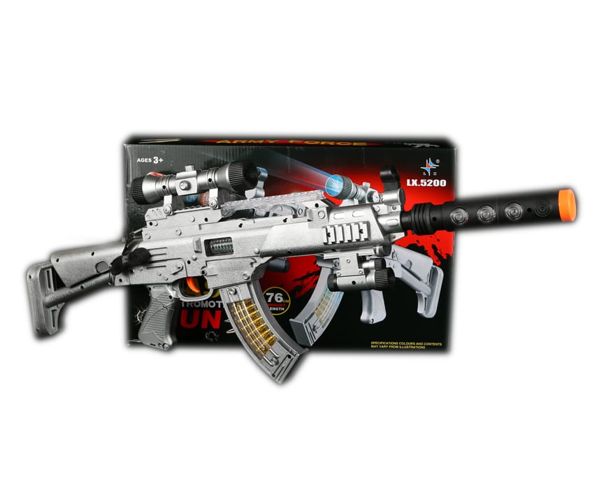 Pull the trigger to let your child be mesmerized by the intriguing lights and sound.